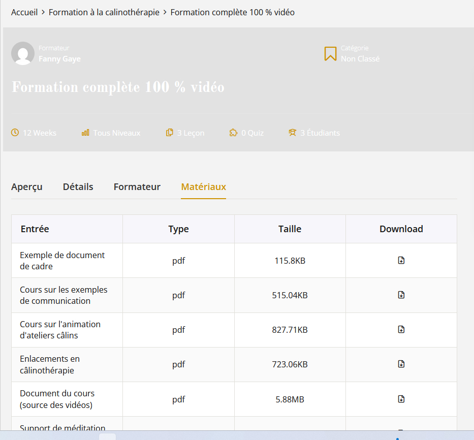Notre formation Devenir câlinothérapeute (premium) vous permettra d’avoir tous les outils et notions nécessaires pour conduire une séance individuelle (ou collective) en câlinothérapie de façon à ce qu’elle soit profitable et secure pour vous et votre câliné (vos câlinés). Cette formation en câlinothérapie permet d’apprendre les techniques de base de cette approche thérapeutique. Elle traite des aspects émotionnels et psychologiques de la thérapie par les câlins. Des exercices de méditation sont proposés pour créer un environnement propice au centrage et à l’amour.